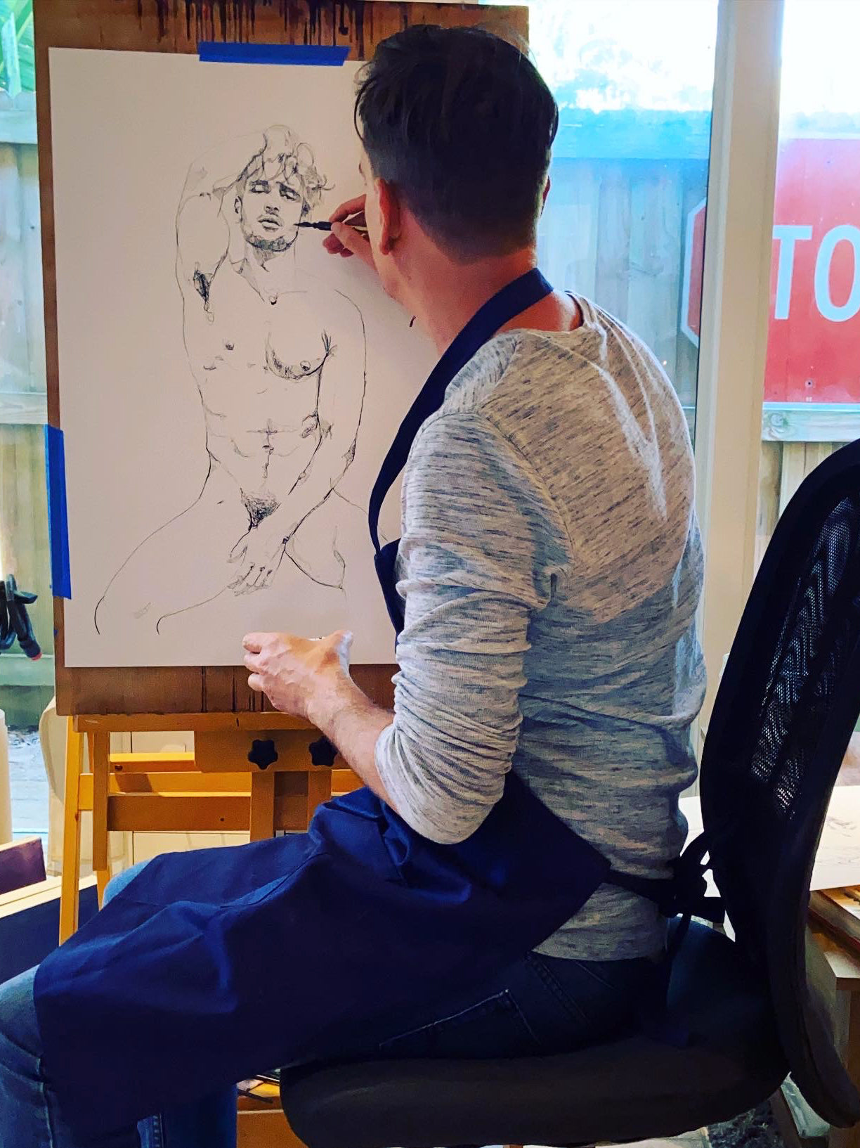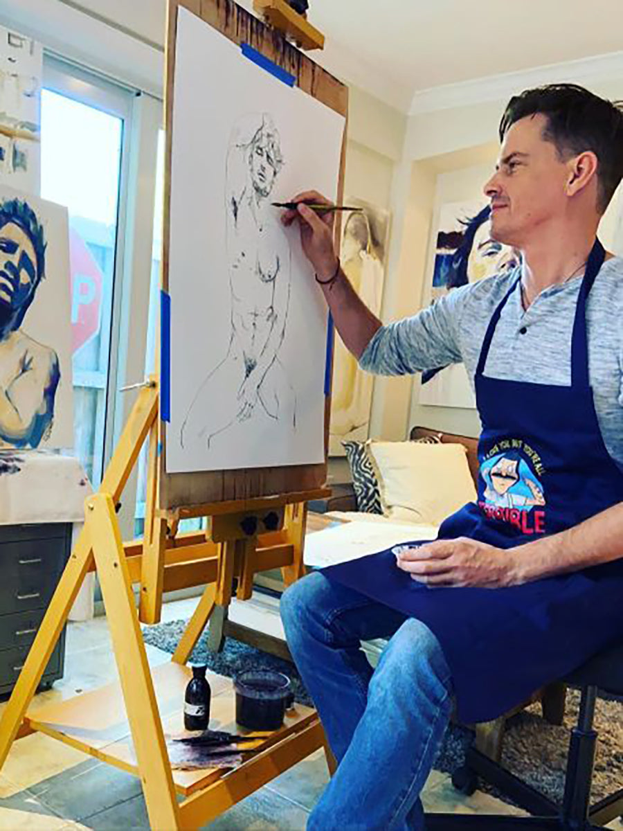 Whether creating male figure studies, portraits, or abstract compositions, his intention remains the same. To create work that feels direct, thoughtful, and quietly powerful.