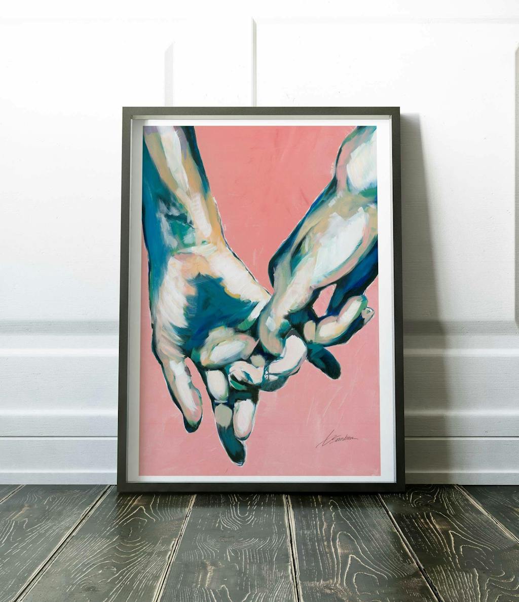 Two Men's Hands Intertwined in Tender Gay Love - Art Print